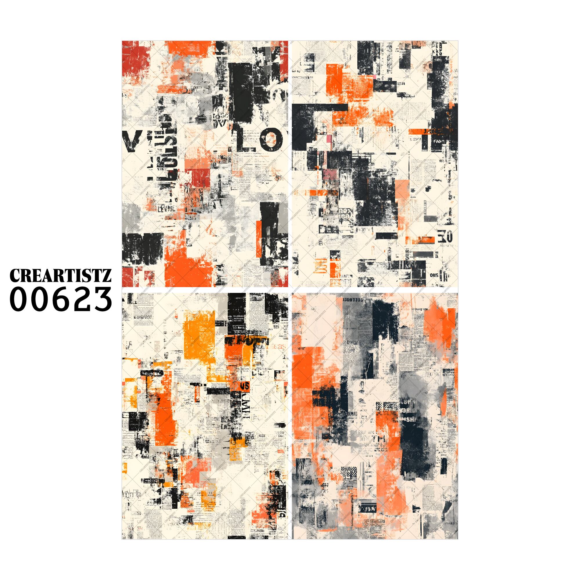 00623 背景 コラージュ素材 オリジナル 12枚セット (4種類×3枚) ペーパー/ステッカー CREARTISTZ