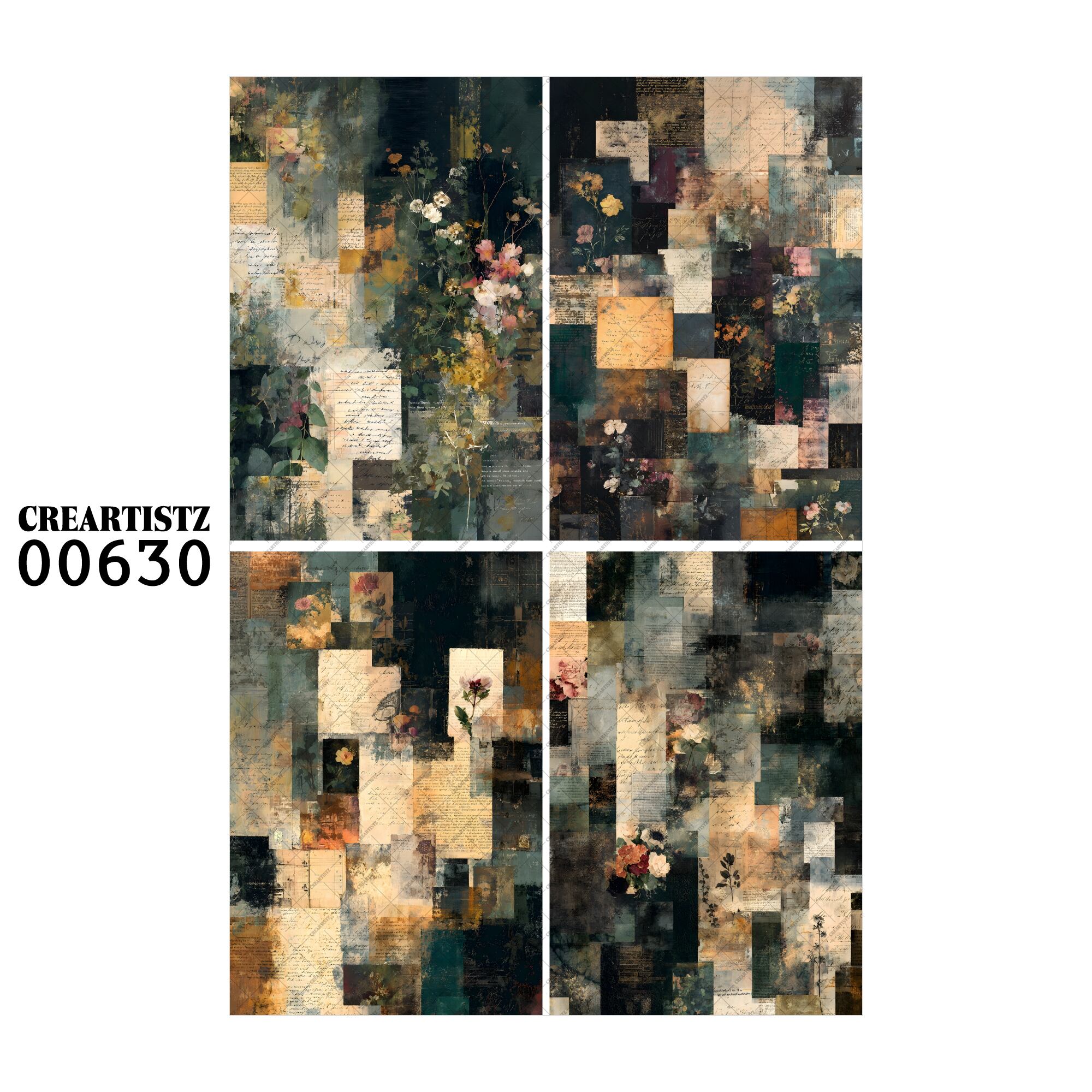 00630 背景 コラージュ素材 オリジナル 12枚セット (4種類×3枚) ペーパー/ステッカー CREARTISTZ