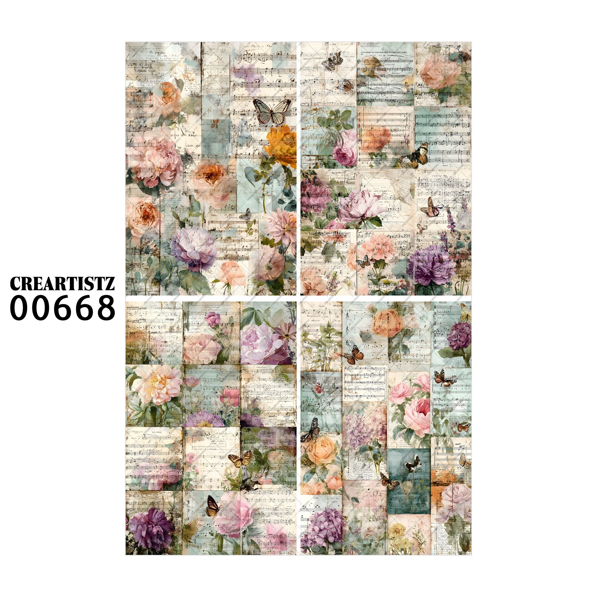 00668 背景 コラージュ素材 オリジナル 12枚セット (4種類×3枚) ペーパー/ステッカー CREARTISTZ