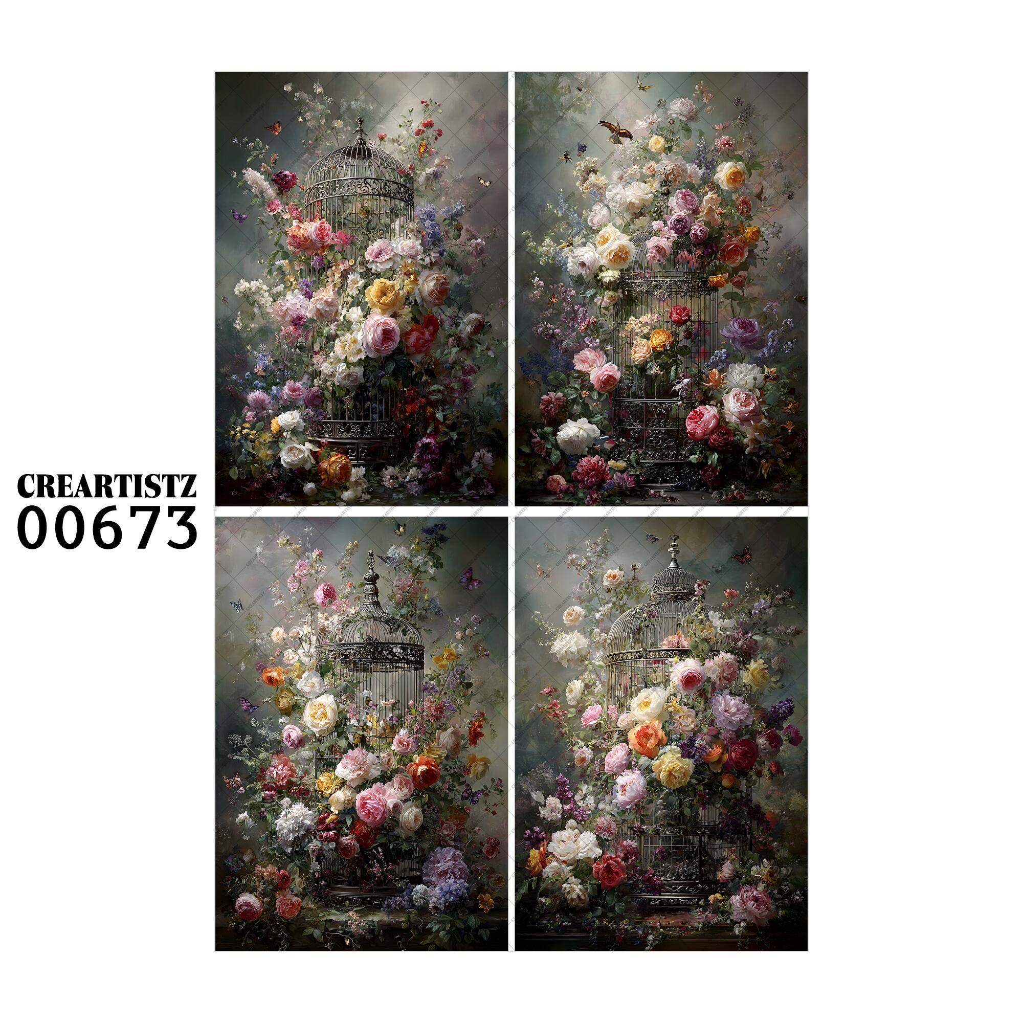 00673 背景 コラージュ素材 オリジナル 12枚セット (4種類×3枚) ペーパー/ステッカー CREARTISTZ