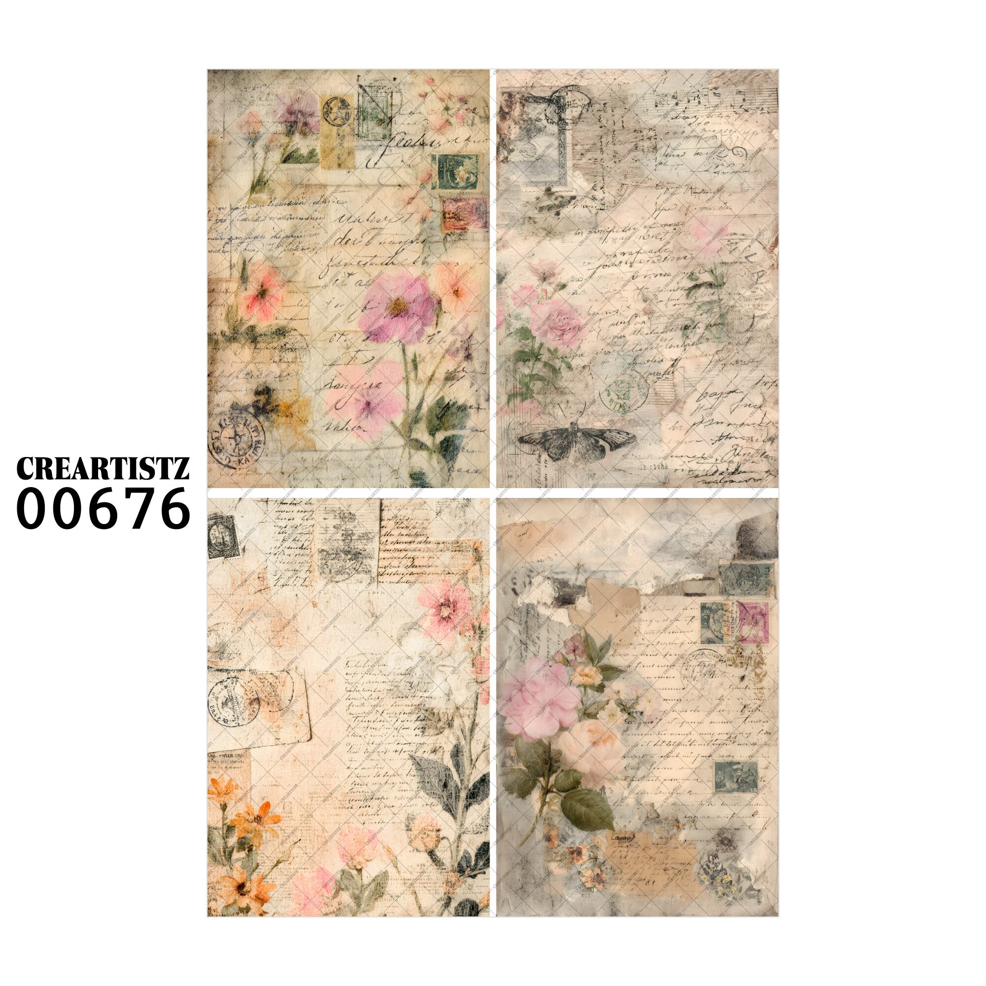 00676 背景 コラージュ素材 オリジナル 12枚セット (4種類×3枚) ペーパー/ステッカー CREARTISTZ