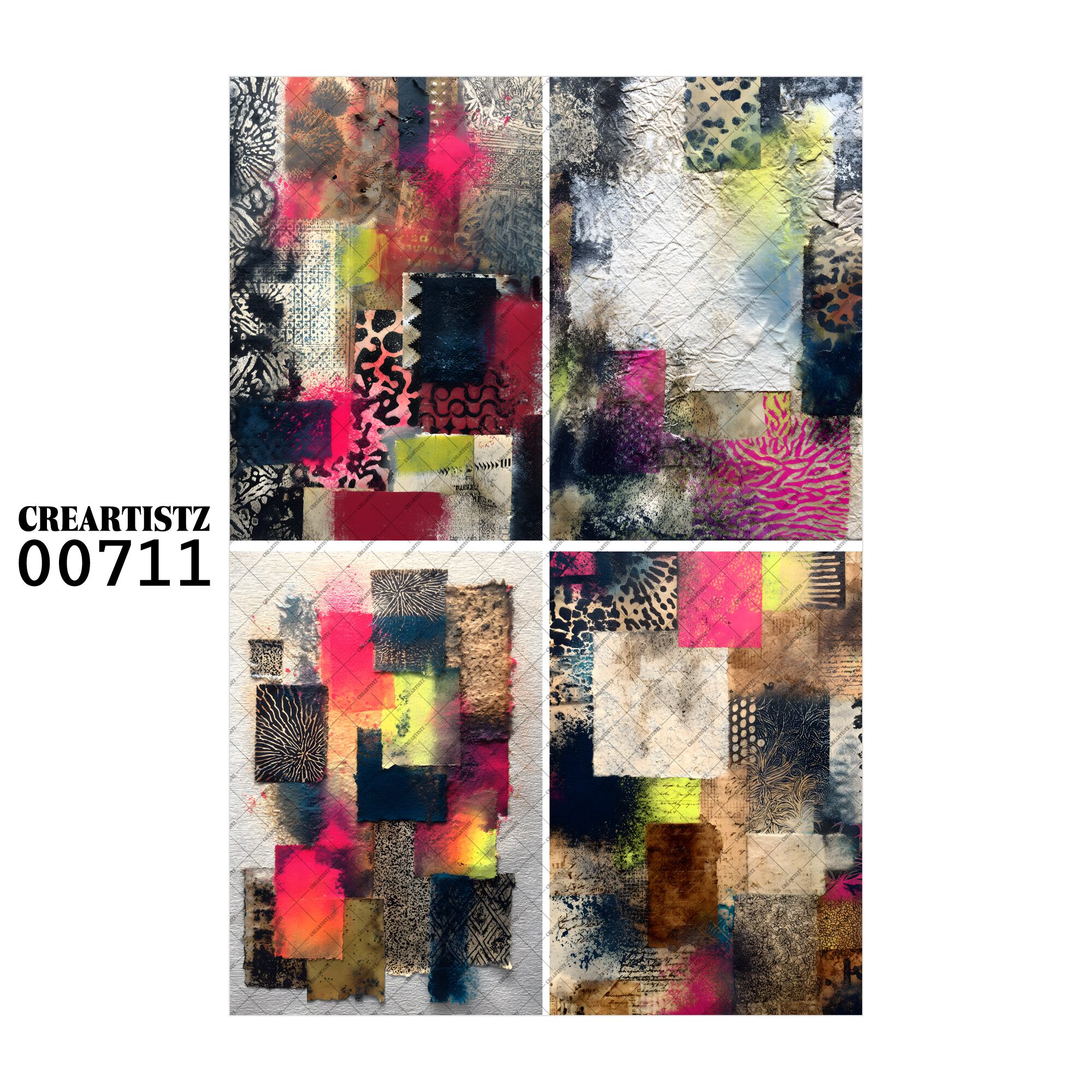 00711 背景 コラージュ素材 オリジナル 12枚セット (4種類×3枚) ペーパー/ステッカー CREARTISTZ