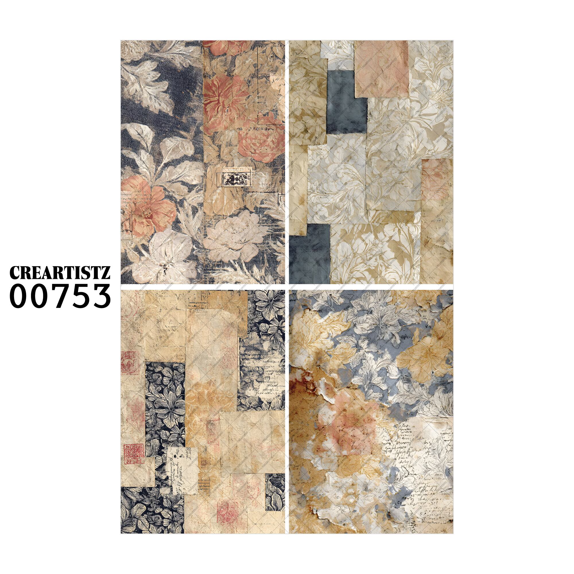 00753 背景 コラージュ素材 オリジナル 12枚セット (4種類×3枚) ペーパー/ステッカー CREARTISTZ